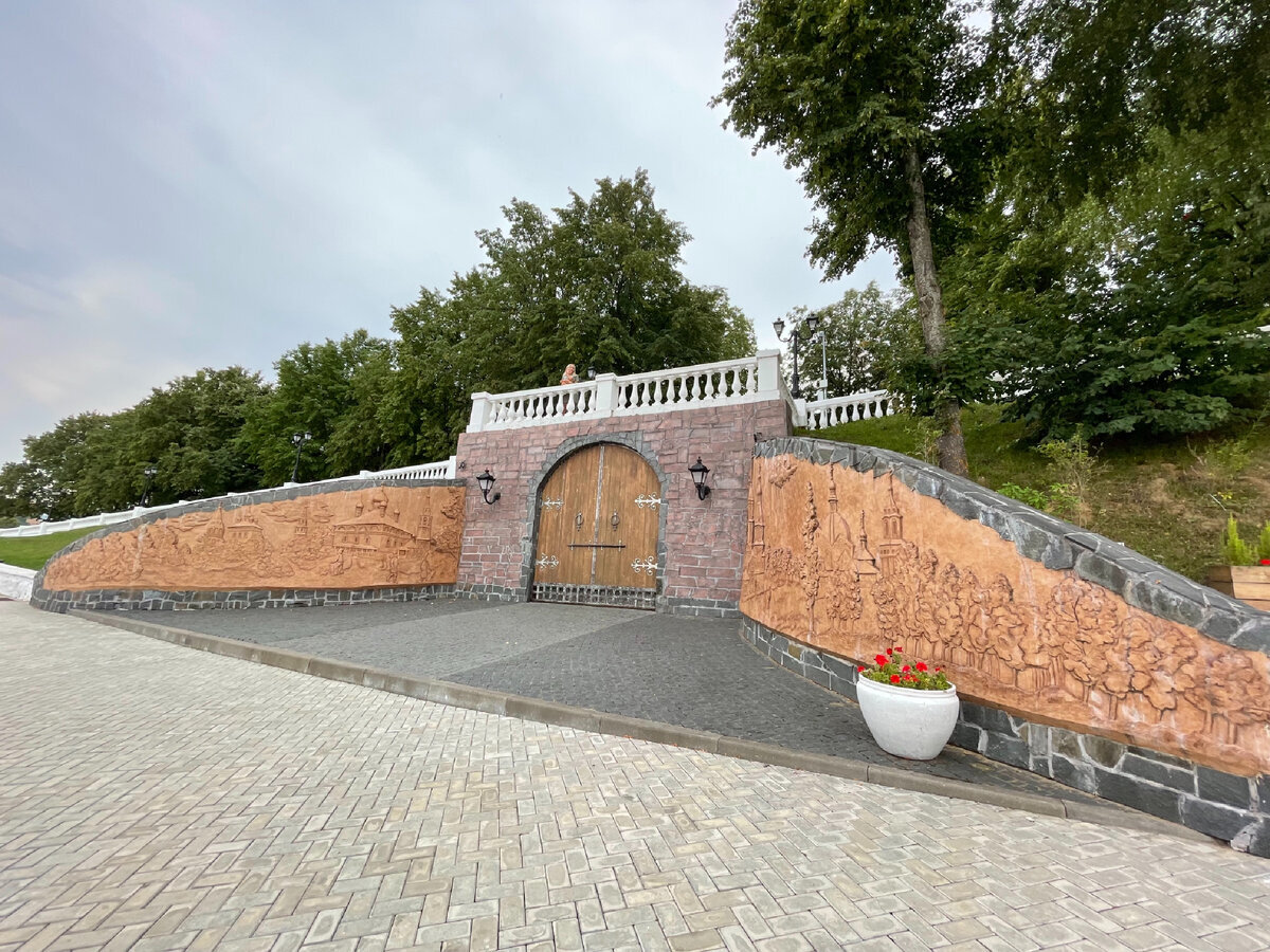 Как раз один из этих секретных входов дожил до наших дней, а входная зона украшена барельефом с чебоксарским кремлем.