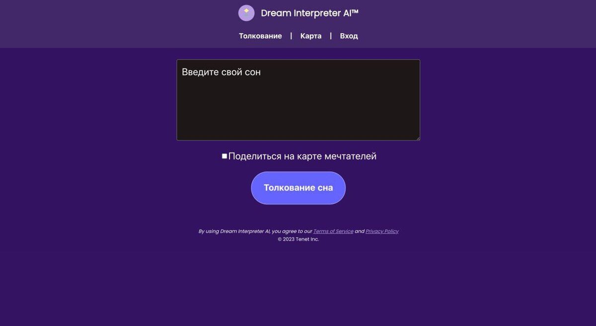 Dream Interpreter - это веб-сайт, который поможет расшифровать скрытые смыслы ваших снов с помощью искусственного интеллекта. Нейросеть использует различные теории и методы анализа и интерпретации снов от психоаналитиков начала XX века до самых современных научно-обоснованных гипотез. https://dreaminterpreter.ai/