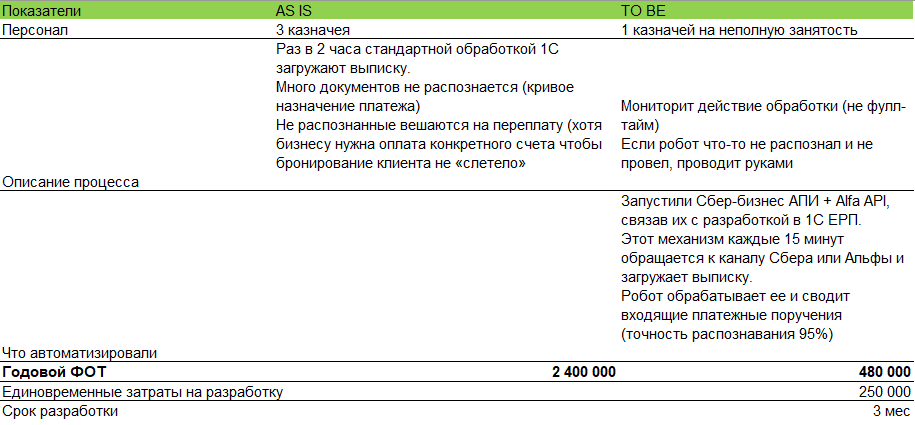 В этой задаче мы круто автоматизировали входящие операции - на рисунке наглядно видно AS IS и TO BE: