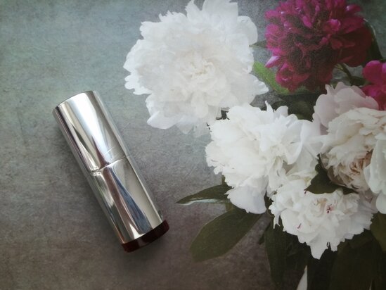 На фото выше на свотче помада слева нанесена в один слой, а справа а три слоя. Она не глянцевая, сильно не блестит, не жирная, не растекающаяся. Она ближе к кремовой, но все же недостаточно плотная. Увлажняет вполне приятно, на уровне очень хорошей гигиенички, впрочем у вообще довольно редко бывают претензии именно к уходу Clarins.