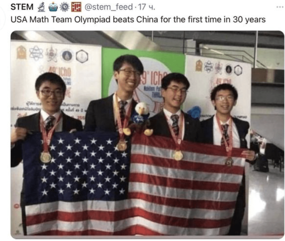 "Сборная США по математике впервые за 30 лет победила сборную Китая".