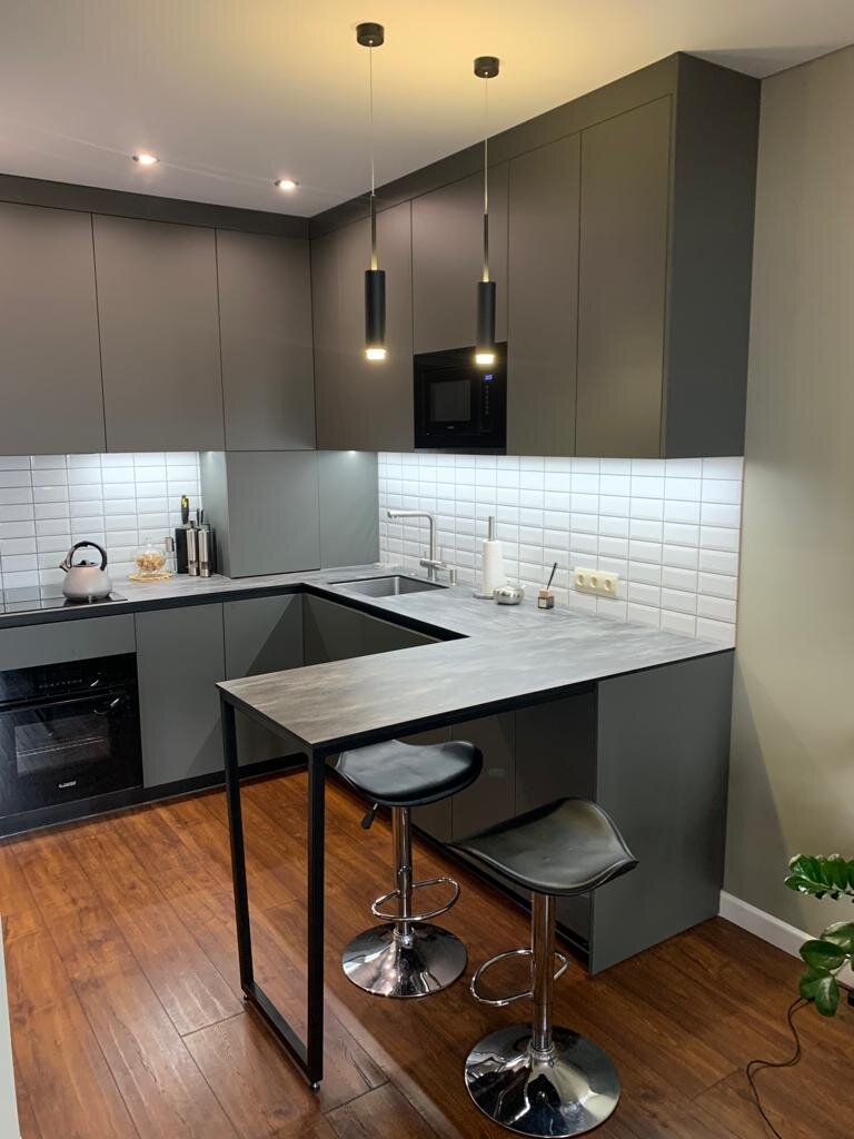 За счет барной стойки увеличили рабочую зону.