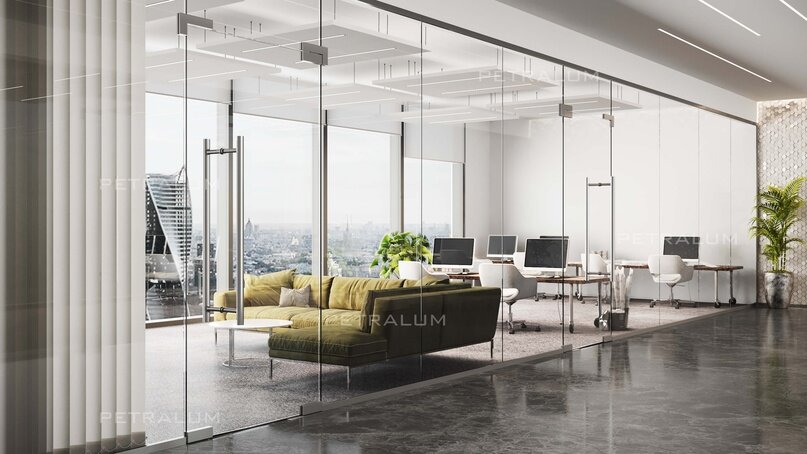 Цельностеклянные перегородки NEOPLAZA-40 — это инновационное решение для офисного/торгового пространства. Эти перегородки выполнены исключительно из высококачественного закаленного стекла толщиной 8-12 мм, что обеспечивает долговечность, надежность и безопасность конструкции в целом. Одним из главных преимуществ использования цельностеклянных перегородок NEOPLAZA-40 является создание визуально просторного и светлого офисного или торгового пространства. Стекло пропускает максимально большое количество света в комнату, что создает приятные условия для работы и общения. Кроме того, все конструкции выполнены в строгом минималистичном стиле, поэтому отлично впишутся в любой интерьер. Еще одним важным преимуществом цельностеклянных перегородок NEOPLAZA-40 является их легкость установки и возможность быстро изменять конфигурацию помещения при необходимости. Все конструкции собираются на месте. Монтаж не занимает много времени и не доставляет неудобств сотрудникам. В офисном пространстве цельн