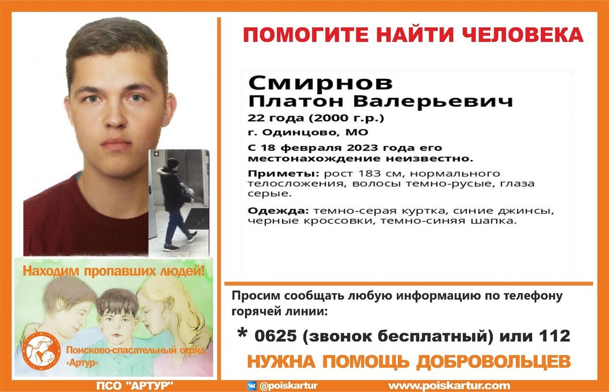 С 18 февраля 2023 года его местонахождение неизвестно. тема на нашем сайте https://poiskartur.com/search/smirnov-platon-valerevi..