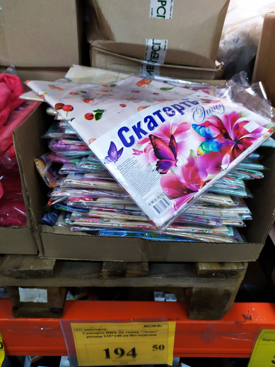Хозяйственный отдел "Светофора" полон разнообразных позиций, которые можно разложить по категориям. Посуда, одежд, обувь и товары для туризма, и наведения порядка практически всегда есть в продаже. В этом обзоре, делюсь с вами увиденным в "Светофоре" города Абинск. Настольная скатерть ПВХ на тканевой основе с разнообразными печатными рисунками, размером 125/140 см. Цена 194 рубля. Комплект перчаток ХБ с покрытием ПВХ для дачников и строителей, в упаковке 5 пар. Цена 54 рубля. Складная светодиодная лампа "Цветок" с 3 лепестками, мощностью 30 ватт. Цена 290 рублей. Хозяйственный коврик для разных целей 7 в 1 размером 47/85 см. Не впитывает влагу и запахи, легко чистится от грязи, легко режется и так далее. Цена 289 рублей. Освежитель для унитаза из 3 штук массой 50 грамм, с ароматами цитрусовых, океана и цветов. Цена 96 рублей. Средство для мытья посуды БИОЛАН с ароматом цитрусовых, в бутылке 900 грамм. Цена 82 рубля. Набор ковриков для ванны и туалета разных расцветок. Цена 418 рублей.