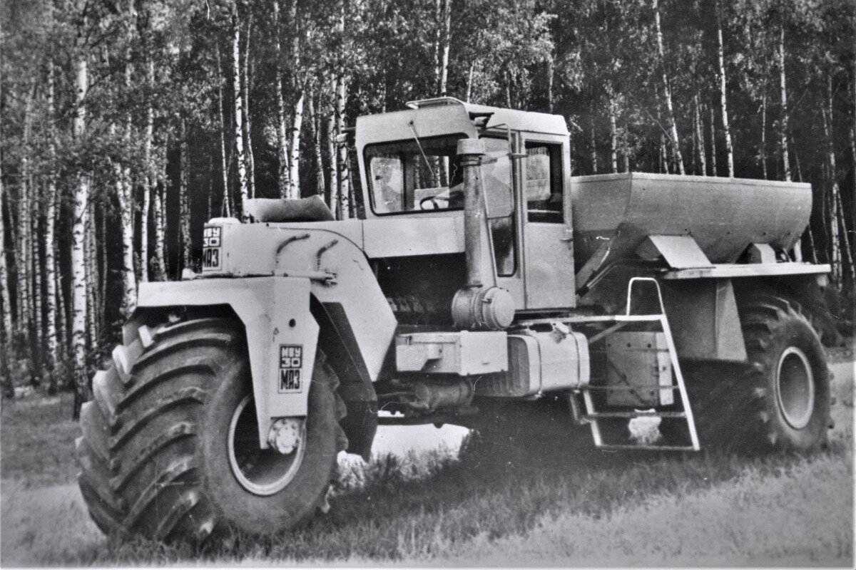 В истории Советского Союза хорошо известно его стремление создавать качественную и надежную технику, которая удовлетворяла требованиям организаций и окупала свои затраты, служа долгие годы. Такая стратегия была применена во всех промышленных отраслях, и часто разрабатывались проекты, которые не могли быть запущены на широкий конвейер. Советские инженеры часто обращали внимание на западные разработки и стремились повторить их, либо по заданию партии, либо по собственной инициативе. История, которую мы рассмотрим сегодня, связана с необычной машиной для сельского хозяйства, предназначенной для внесения удобрений. Эта техника была разработана в 1977 году и получила название МВУ 30, что означает "машина внедрения удобрений". Она представляла собой уникальное трехколесное устройство с бункером в задней части. В 1978 году было собрано несколько экземпляров, которые успешно прошли испытания. На МВУ 30 был установлен восьмицилиндровый дизельный двигатель марки КамАЗ, обладающий мощностью 210 л