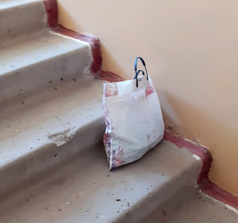Зашла в квартиру и рассказала о странном предмете сестре. Вышли вместе на лестничную клетку, еще раз осторожно, не касаясь, осмотрели пакет. Посоветовавшись, решили позвонить в МЧС. На всякий случай сфотографировали и записали пищащую находку на видео: вдруг, пока ждем спасателей, вещдок исчезнет — доказывай потом, что это не ложный вызов. А находиться рядом с подозрительным предметом было как-то, мягко говоря, не по себе.