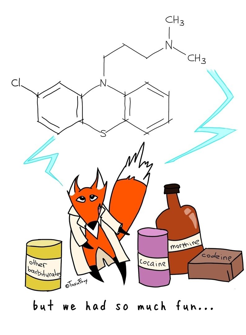 Дорогу французскому военно-морскому флоту! Мы с вами уже в 1950 году. Время летит, а распотрошённые солдаты всё мрут от боли на столах у хирургов, истекая алой кровью... И всем невероятно повезло, что как-то раз военному хирургу Анри Лабориту надоели все эти вопли под скальпелем, и он плотно призадумался об анестезии не морфием, и не коньяком. Напару с Пьером Гугенаром они начинают экспериментировать в смешивании прикольных литических коктейлей из лекарств, от которых бы уносило без шока и стресса. И Гугенард находит удачную композицию из прометазина и петинида (выпускавшихся тогда под торговыми названиями Diparcol и Dolossal) и делится открытием с Анри.