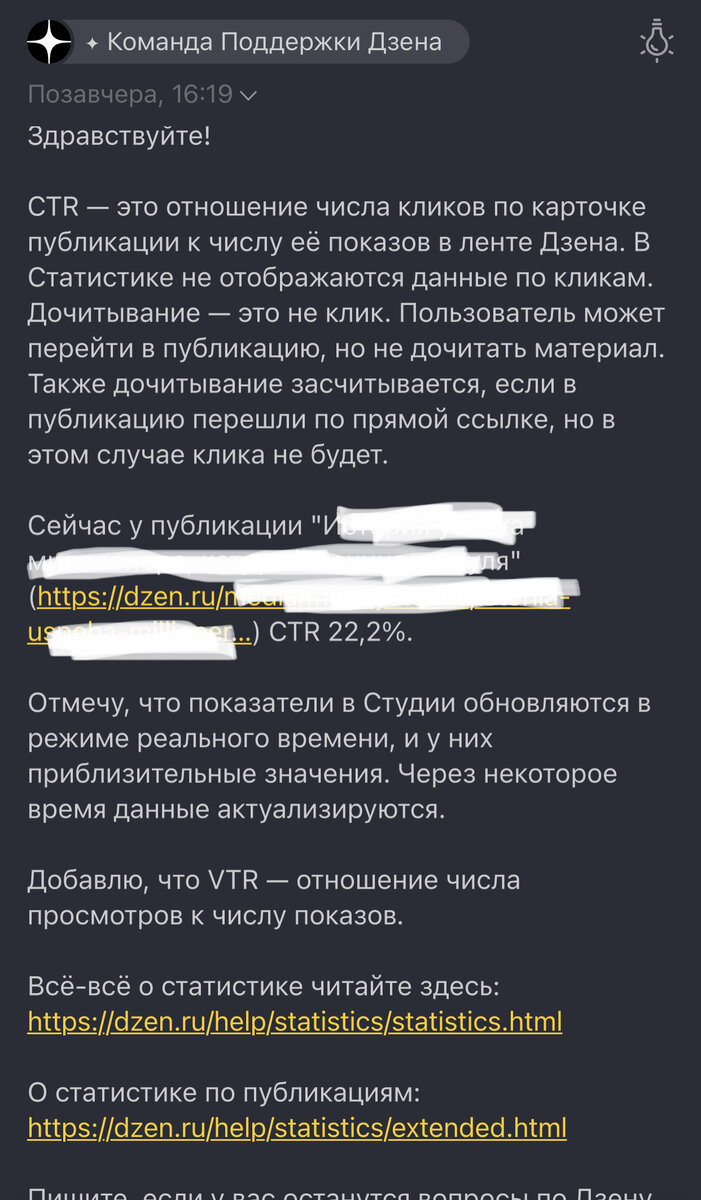 Ну что я говорила? Никто не крадет наши показатели и подписчиков, и не начисляет лишние плюшки любимчикам. Все оказывается намного проще — нам врут. Все началось в этой статье: Там я поняла, что можно сколько угодно оперировать логикой, но неплохо бы запросить официальный комментарий. Как думаете, совпала логика с ответами ТП? Запрос отправила через форму с приложением скрина 150%, спросила как рассчитывается CTR, действительна ли формула, которую я дала в прошлой статье и если да, то как может быть больше 100%? 1 ответ И тут мы видим мой любимый «прием» ТП — частично ответить на заданный вопрос, чтобы дальше увести неудобный разговор в другое русло. Итак, формулу я дала верную: только клики по карточке и ее показы. Но где ответ, как же тогда 150% получилось? Спрашиваю снова И опять мой любимый «прием»: я не просила присылать текущую статистику, я спрашивала, как возможно 150%. Ответ, прямо скажем, ни о чем. Перевожу: Когда вы готовите борщ, то на глаз бросаете соль. Потом проб