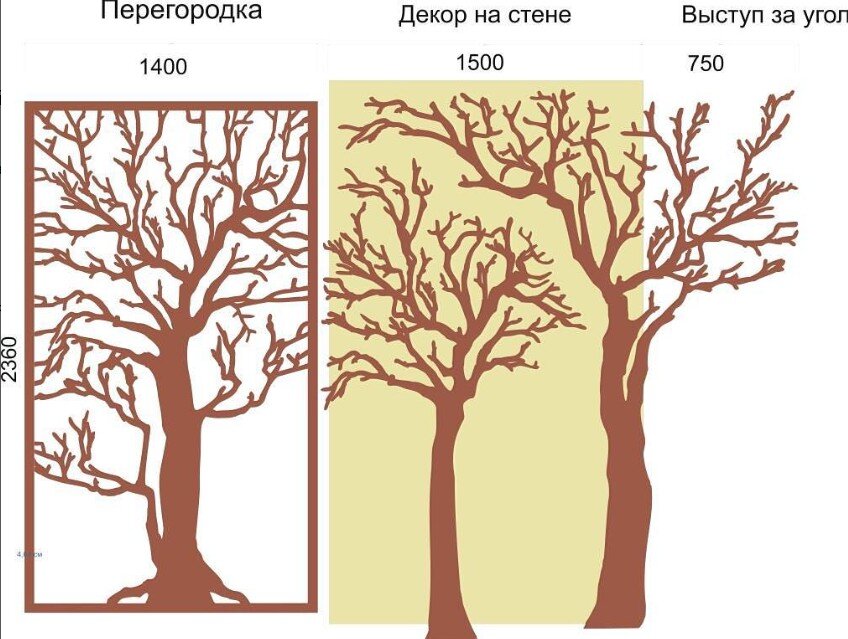 Декоративная перегородка с силуэтом дерева и декор на стену с подсветкой