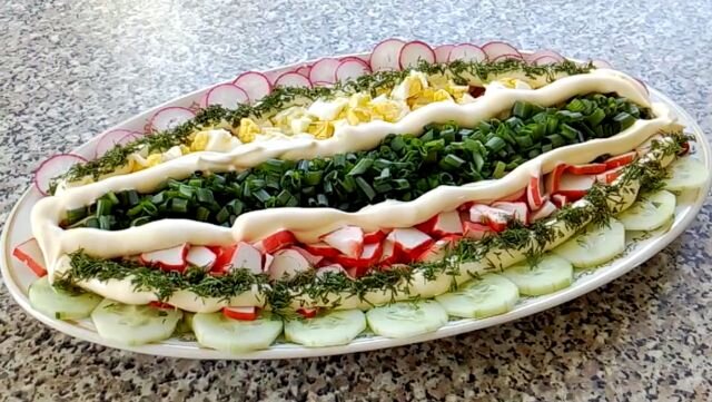 Как-то на своем блоге я описала достаточно большое количество рецептов салатов из крабовых палочек. Но на тот момент, я еще не знала о существовании этого замечательного способа, иначе обязательно включила бы его в прошлую статью. Обязательно приготовьте этот сочный, очень необычный на вкус салат. 🔥 Лучшее в телеграм: Посмотреть Ингредиенты: Способ приготовления: Огурец очистите от кожуры, удалите хвостики и порежьте кольцами. Крабовые палочки нарежьте небольшими кусочками. Удаляем у редиса ботву и также режем тонкими кольцами. Удаляем скорлупу у яиц и режем их кубиками. Затем шинкуем зеленый лук. Солим по вкусу и заправляем салат майонезом. Блюдо слегка присыпьте мелко нарезанным укропом.