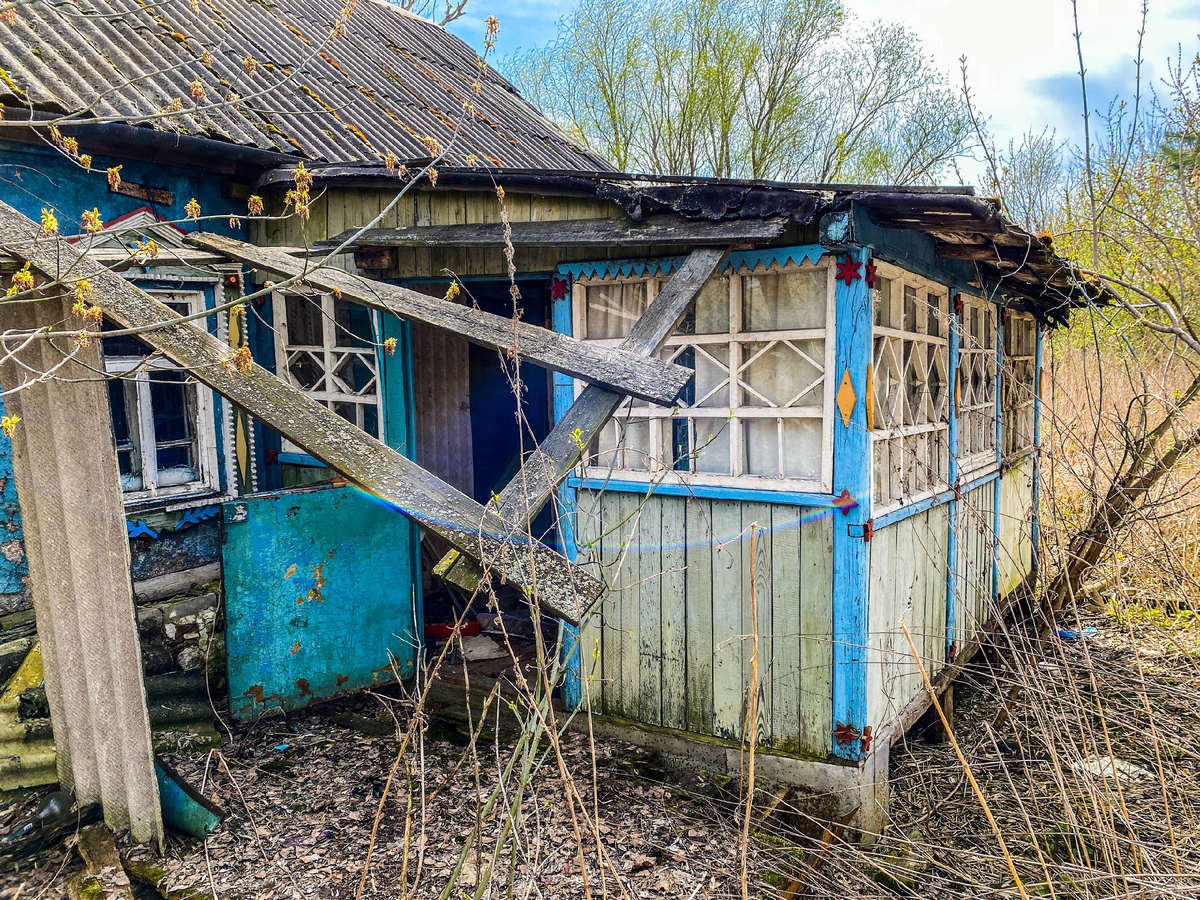Этот заброшенный дом мы нашли в одной полностью вымершей деревне. Ни одного жителя там не осталось! И почти все дома были уже наполовину разрушены. Эта же заброшка еще более-менее сохранилась. Стены, по крайней мере были на месте. А вот крыша уже начала постепенно рушиться. На окнах дома сохранились красивые наличники. Вы только посмотрите, какие на них резные узоры, цветочки, ромбики. Видно, что когда-то этот дом строили с душой. И очень печально, что сейчас все это брошено. Сзади дома сохранилось много деревянных сарайчиков. Когда-то здесь держали большое хозяйство. Сейчас - все поросло бурьяном. А теперь давайте заглянем внутрь этого заброшенного дома. Попадаем в большую и светлую террасу, входная дверь в которую открыта настежь. В углу стояла пара широких охотничьих лыж. Видимо, когда-то в доме жили одни из последних жителей деревни, дороги туда уже не чистили, и зимой на этих лыжах добирались до ближайшего села, где сохранилась какая-никакая цивилизация. Также в террасе стояло