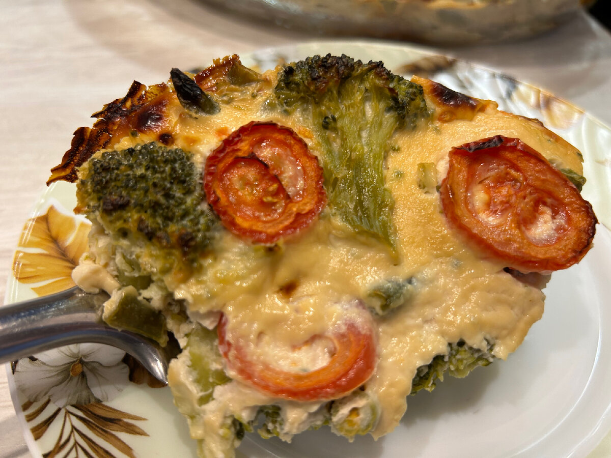 Простое доступное блюдо, которое ешь с удовольствием и худеешь. Блюдо на все сезонные времена. Я сама ем частенько и всем подругам рассказала рецепт, ведь хочется быть в форме, молодой и красивой. А в этом рецепте всё вкусно и просто вкусно. 🟢 Способ приготовления: ✔️ У меня стеклянная форма для запекания и выкладываю замороженные овощи. Ещё и лучше, потому что будет более сочное. У меня, это фасоль стручковая и брокколи. ✔️ Далее нарезаю кусочками куриную грудку ✔️ Затем выкладываю на овощи. ✔️ Готовлю простую и вкусную заливку. ✔️ Смешиваю яйца, творог мягкий, но можно и сметану, соевый соус. Любимые приправы у меня, это смесь приправ сухой чеснок, хмели, паприка. Соль я не добавляю, мне достаточно соевого соуса и приправ. Если вам не хватает, то добавьте по вкусу. ✔️ Всё хорошо перемешиваю в однородную массу и заливаю приготовленные продукты. А также добавляю помидоров. ✔️ Перемешиваю. Убираю в духовку на 40-50 минут, при 220 градусов. ✔️ Всё получается аппетитно вкусно. Приятного