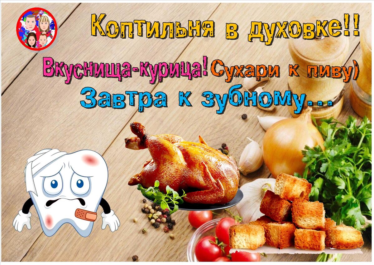 Курица-вкуснища!Коптим дома в духовке)Сухари ушли с пивом!Завтра к зубному...