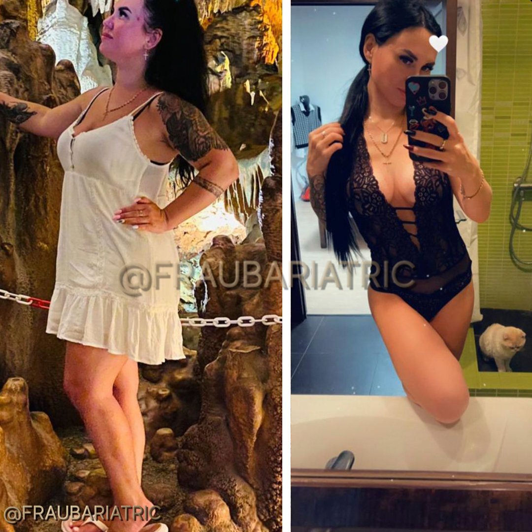 Пациентка после операции резекция желудка (слив). Между фотографиями до и после операции почти два года.