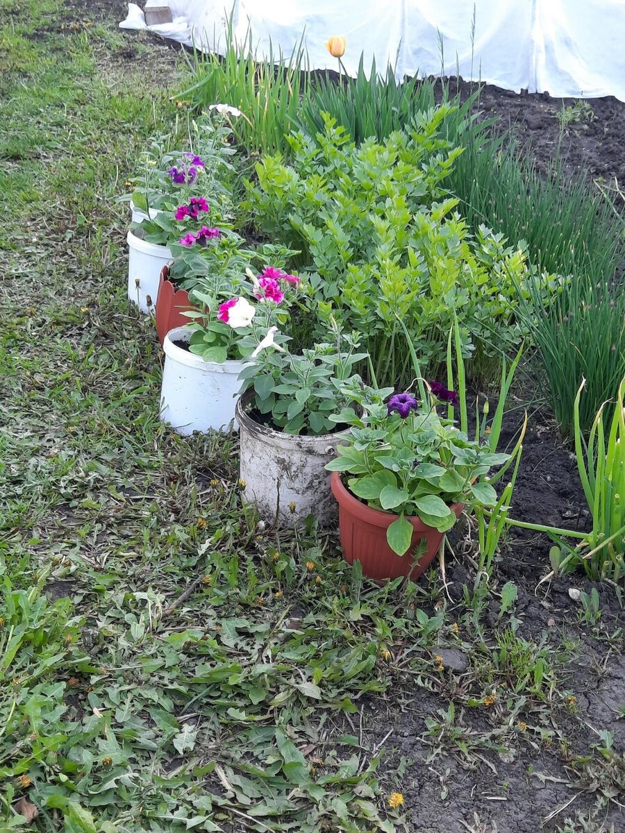 Всем привет. Ну наконец то наступили тёплые дни. А то все ходим в куртках, да в тёплых штанах, надоело уже. Поскорее бы снять все портки. С этими заморозка и много цветов пострадало. Они ж теплолббивые, а тут такое и после мороза как холодно. А все укрывать это сколько материала надо и денег, чтоб все купить. Это просто нереально. Ну вот сегодня воздух прогрелся до 25 градусов можно все высаживать. Ветер сильный был и вся земля высохла, аж потрескалась. И на будущее дождей не предвидится ну в общем как обычно. Дожди будут лить тогда, когда они и на фиг не сдались. Мои цветы уже на окнах зажарились и места им в стаканах мало пора высаживать. Думаю не замёрзнуть. Многие уже пересадили в горшки пусть растут, цветут. Выйду утром с кофе и полюбуюсь на цветы. Зачем тратится на горшки когда у меня белые 5 литровый ведра есть, вот прям в них и посадила. Чем не горшок то. Очень даже отлично вписался. Кстати в магазине 5 литровое ведро стоит дешевле чем горшок. Ведро 60 рублей, а го