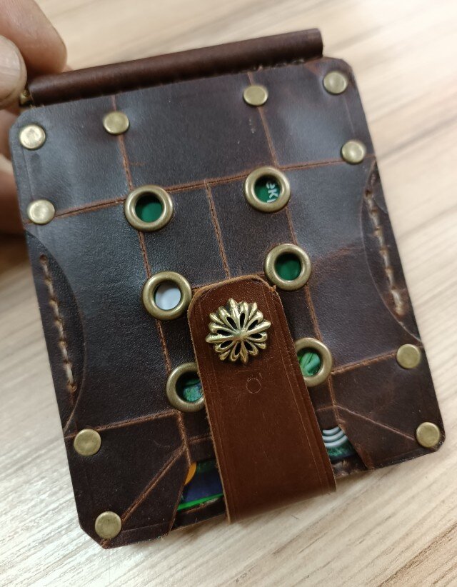 Иногда хочется сделать нестандартные вещи, и вот получается такое. Картхолдер зажим из натуральной кожи, его я придумал в разгар рабочего дня, в три часа ночи. Напомню о себе, я охранник, вернее сторож диванов и кухонь в торговом центре. (Рамиз привет!) А так как получил наконец-то заказанную фурнитуру, то теперь использую её везде Картхолдер на четыре карты, но можно запихать и больше, зависит от физических данных Яповца Ремешок сделал с запасом, чтобы можно положить среднюю зарплату россиянина, где-то тыщ триста Использовал фурнитуру цвета "антик", и получился стимпанк или дизельпанк Вроде получилось неплохо я щитаю, в руке лежит хорошо, очень привлекает внимание красивых девушек, проверено Ну и еще пару фото других изделий Параллельный картхолдер Только без зажима Кстати, это мой бренд, бес него никуда Источник