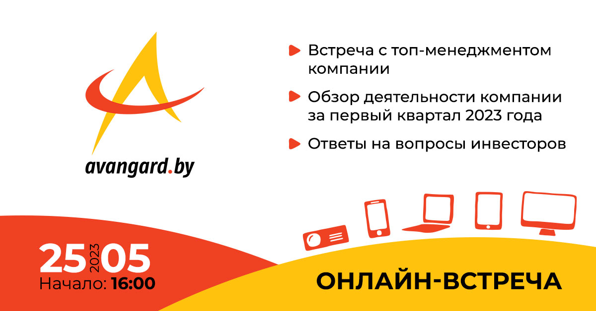 ЗАО "АВАНГАРД ЛИЗИНГ" приглашает физических и юридических лиц, заинтересованных в инвестициях в ценные бумаги, а также профессиональных участников рынка ценных бумаг на онлайн-встречу с топ-менеджментом компании. В ходе встречи директор ЗАО «АВАНГАРД ЛИЗИНГ» Андренко Антон Анатольевич представит слушателям информацию о результатах деятельности компании за первый квартал 2023 года, расскажет о новых эмиссиях, планах развития компании, а также ответит на интересующие вопросы инвесторов в прямом эфире. Для участия в онлайн-встрече необходимо зарегистрироваться. ЗАРЕГИСТРИРОВАТЬСЯ