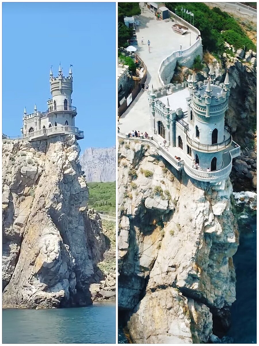 Удивительный миниатюрный замок на скале Авроры, богини утренней зари, уже столетие по загадочным причинам притягивает людей. Одна из главных достопримечательностей Крыма . Его визитная карточка. Это ЛАСТОЧКИНО ГНЕЗДО . Говорят кто там не был - не был в Крыму. Внутри замка находится музей.