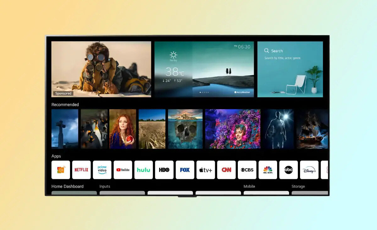 В течение многих лет webOS от LG была построена вокруг меню в нижней панели, своего рода ящика приложений, который позже был расширен и стал включать в себя предварительный просмотр контента и ярлыки, но в 2021 году компания представила полностью переработанный пользовательский интерфейс webOS в полноэкранном режиме.