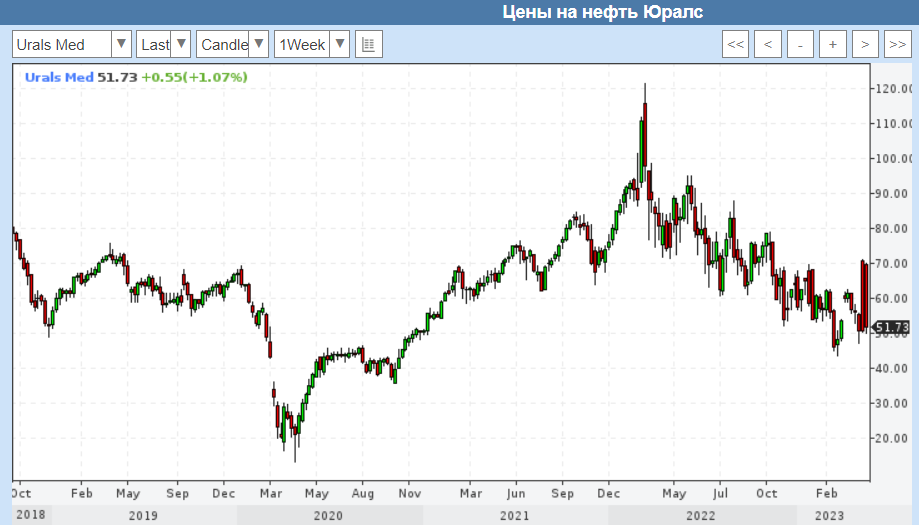 🛢 Минфин опубликовал расчёт экспортной пошлины на июнь. Чем он интересен? Там рассчитывается средняя цена марки Urals из которой вытекает сумма экспортной пошлины. За период с 15 апреля по 14 мая средняя цена Urals составила — $55,97 (прошлый период — $51,15). А значит экспортная пошлина на нефть в РФ с 1 июня 2023 года повысится на $1,8 и составит $16,2 за тонну. Пошлина значительно повысилась, по сути, дисконт к Brent меньше предельного (спрэд составил $23, а предельный дисконт установлен: май — $31, июнь — $28, июль — $25), поэтому налогообложение происходит по фактической цене Urals — $55,97. За данное повышение говорят и данные Минфина о средней цене Urals в апреле, она составила $58,63 (-16,9% г/г, $70,52 за баррель). Средняя цена Urals с начала года сложилась на уровне $51,05 (-39,7% г/г, $84,68 за баррель). А средняя цена Urals в марте составляла $47,85 (-46,3% г/г). Как вы понимаете, апрель для нефтяных компаний выдался отличным (Лукойл, Татнефть, Роснефть и т.д.): повышение