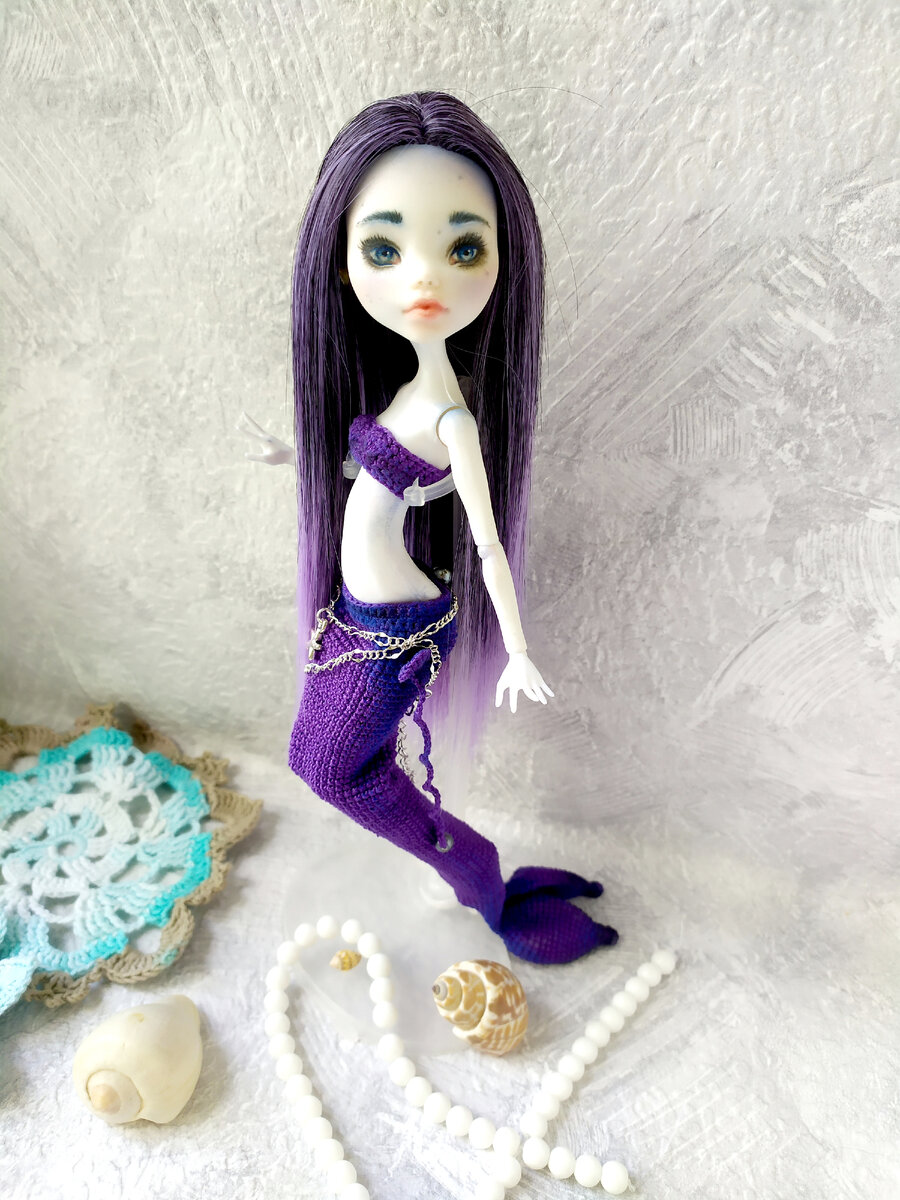 Всем привет!!!! Готова моя подводная девочка!!! Ищет свой Домик Стоимость 2000Р + почта. В этом посте расскажу немного историю ее создания! А так же МАСТЕР_КЛАСС по хвостику будет прикреплен для всех желающих повторить! 1. Это не первая моя девочка Русалочка, очень люблю их создавать! Эту малышку я создала на молде - аналоге МХ с Алиэкспресс, молды порадовали, шарниры крепкие, без изъянов... и да, я заказала несколько молдов сразу, так как беспокоилась, что придут с браком и т.п....а нет...все отлично! Молды хорошие, а это значит, что девчонок будет больше! Очистив молд от всего лишнего, а именно от волос и заводского мейка, я начала прошивку и проклейку волос, сделала небольшую запись этого момента, смотрим. После этого, конечно, рисуем новое личико, так получилось, что я записала только самое начало прорисовки, а с остальными частями у меня не сложилось с записями... Ну и финальная часть - одежда! Хвост и топ! Вязать я люблю, очень люблю....ну очень-очень люблю! Вяжем хвостик: