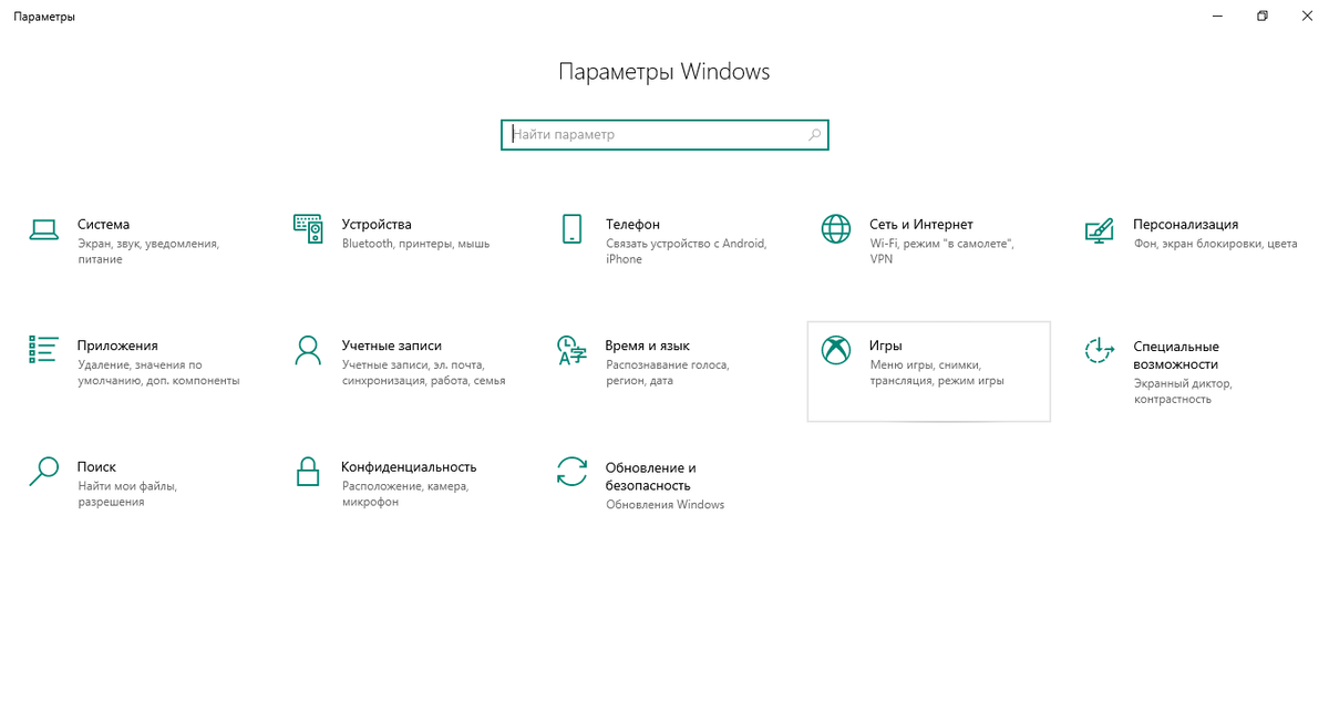 1. Для начала нажмите комбинацию клавиш Win + i (Вин + Ш), затем выберете пункт Игры