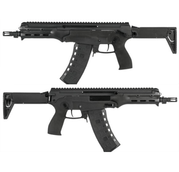 - Возможность удобного ведения стрельбы при сложенном прикладе. Его положение сделано таким, что оно не мешает удобно держать автомат и прицеливаться. Сложенный приклад не препятствует экстракции использованных гильз.