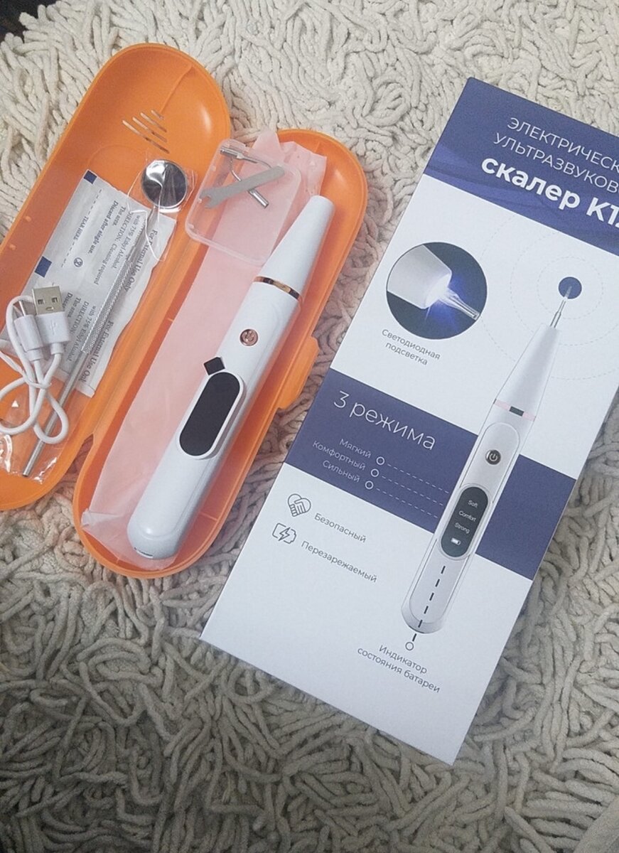 Проблема с зубами - это конечно боль всех людей. Огромные деньги уходят на лечение, импланты, да и просто на чистку. О ней мы как раз сегодня и поговорим. Давно хотела записаться на ультразвук, но финансы поют романсы. И тут я наткнулась в wb на ультразвуковой скалер для отбеливания и чистки зубов. Конечно изначально я сомневалась, что за 600 рублей может быть результат, да и в целом, боялась, что это вредно. Почитав отзывы все же решила попробовать! И не пожалела. В коробке вот такое устройство, есть две сменные насадки, зарядка, зеркало и салфетки для очищения. Сам прибор работает очень легко, ставишь насадку, выбираешь режим, подносишь к зубам и готово. Благодаря ультразвуку происходит чистка, отбеливание и уходят камни. У меня конечно не самый запущенный случай, и я чистила на самом лайтовом режиме, но спустя 2-3 минуты результат есть. Это совершенно безболезненно, немного неприятный звук и все. Зубы хорошо отбеливаются, камни тоже уходят и даже потемнения на зубах становятся ме