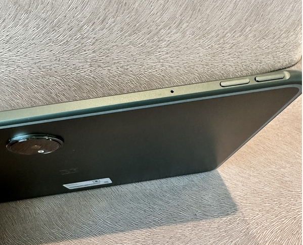 При первом взгляде на устройство, понимаешь, что к дизайну компания отнеслась крайне ответственно. Гладкий металлический корпус Halo Green с изогнутыми краями 2,5D, узором из концентрических кругов на задней панели, выровненным по центру объективом камеры и тонкими рамками вокруг большого 11,61-дюймового дисплея — всё это производит сильное впечатление. Устройство довольно тонкое, его толщина составляет всего 0,65 см, а вес — 552 грамма.