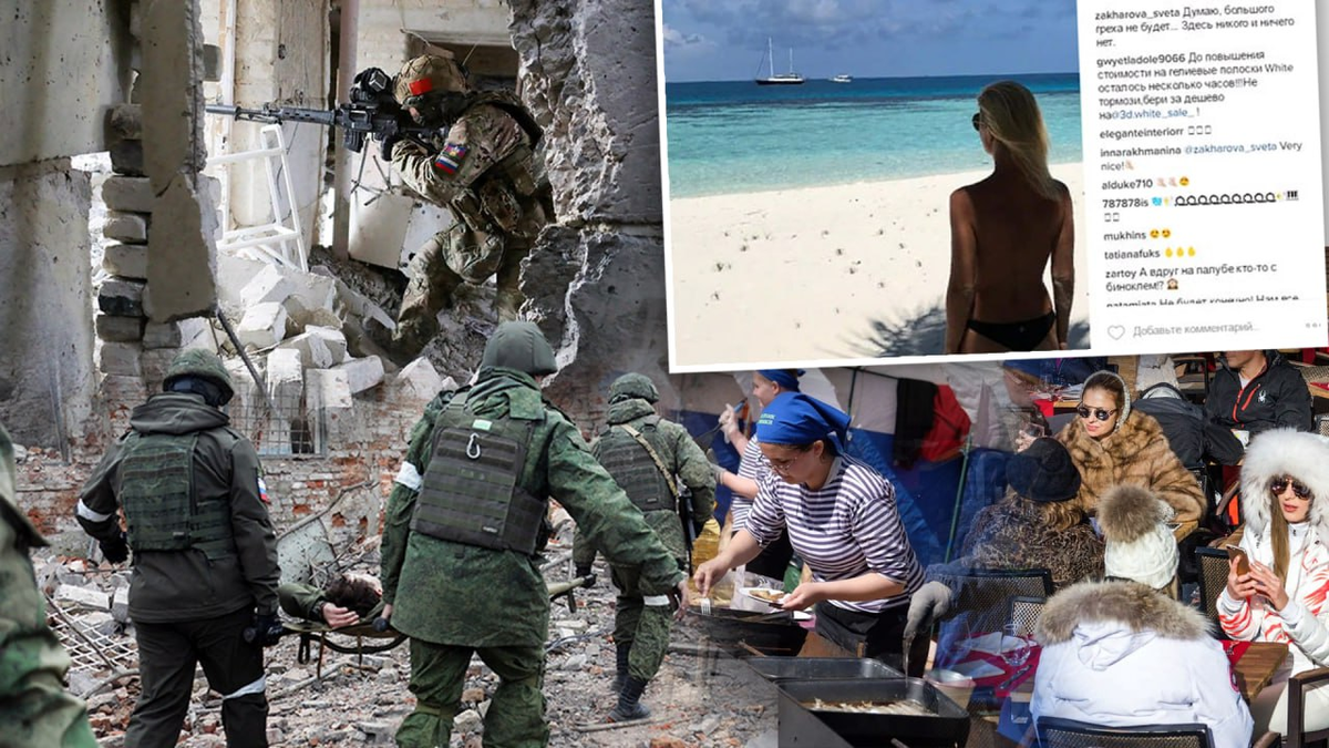 Воюют за то, чтобы дочь и зять министра обороны в разгар жестокой войны имели возможность прожигать жизнь в Дубае, а бывшая (формально) жена заместителя министра обороны – тусоваться в Куршевеле в одной компании с певцом Валерием Меладзе, который до этого на другом курорте произносил кличи украинских нацистов, правда, шёпотом.
