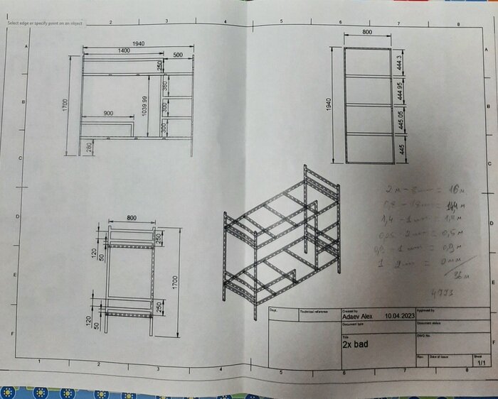 Здравствуйте, уважаемые пикабушники! Пост как вы поняли из заголовка об изготовлении двухъярусной кровати. Будет много буковок) Летом и зимой любим бывать на даче. Имеется вагончик 6 метров длиной, 2 метра 20 см шириной и высотой потолка 2 метра 10 см. Возникла идея для оптимизации пространства в домике - вместо раскладушки и детской кроватки купить двухъярусную. Март и начало апреля потратили и пришли к идеи - нужно сделать самостоятельно по нашим размерам. У мужа опыт строительства есть, моделирование тоже для него не ново, выполнил чертёж. Погода позволила работать 13 мая, что и сделали- купили материалы (36 метров профтрубы 40*20, почти всё ушло), к вечеру уже привезли и супруг начал работать над задуманным. Начало работы забыла сфоткать. В воскресенье 14 мая вот что имелось и получилось. От проекта отошли немного, как супруг сказал - он художник, он так видит. Осталось обработать металл перед покраской и выбрать цвет. Думаю что в эти выходные займёмся доделками. Если будут вопросы