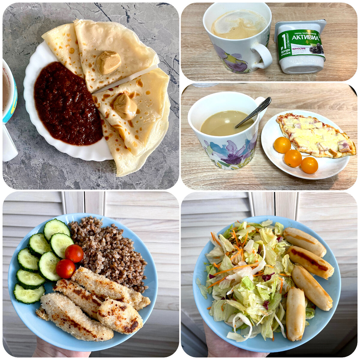 Перекусы: цикорий и йогурт Активиа; кофе и пицца