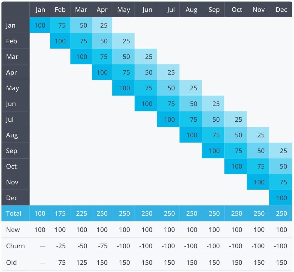 У вас есть подписка на какой-то сервис, типа музыки, фильмов или какой-то софт для работы? Юнит-экономика, которую мы разбирали на прошлых постах — не новый термин. Но стал более актуален в связи с ростом популярности бизнес-моделей, работающих по подписке, например, SaaS (от англ. software as a service — программное обеспечение как услуга). Основная разница — в модели монетизации. Вы расходуете какой-то бюджет на привлечение платящего пользователя (считаете CAC), а потом получаете ежемесячный доход, пока клиент не отпишется от сервиса (LTV). Древние римляне были крайне сообразительными и придумали когорты, в которые объединяли войска. Буквальный перевод с латинского — огороженное место. Мы, будучи тоже сообразительными, придумали когортный анализ, когда объединяем пользователей в условные группы (когорты), по которым проводим отдельный анализ. Представим, что мы продаем Софт по подписке и в январе к нам подписалось 100 платящих пользователей. В феврале, из этих людей остались пользова
