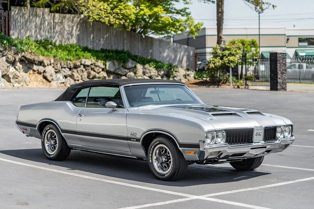 Американский «мускулистый» автомобиль по определению имеет компактные размеры, восьмицилиндровый двигатель, достаточную мощность, впечатляющие ходовые качества и доступную цену. Хотя до этого существовало несколько моделей, которые подпадали под это определение, но Pontiac GTO был первым, и вскоре конкуренты последовали такой стратегии. Причем не только из корпораций Ford, Chrysler и AMC, но и внутри самой General Motors, и одним из таких был Oldsmobile 442. Это не совсем соответствовало общему имиджу, поскольку Oldsmobile служил инновационным брендом General Motors и в основном предназначался клиентам старшего возраста, но компания не могла игнорировать растущую тенденцию. Модель 442 была основана на модели Cutlass, и значение этих трех цифр менялось. До 1970 года 442 означало следующее: двигателя объемом 455 кубических дюймов(7,5 литра), четыре карбюратора и двойной выхлоп. Ранее у General Motors было правило, согласно которому ни одна модель, за исключением Chevrolet Corvette, не мо