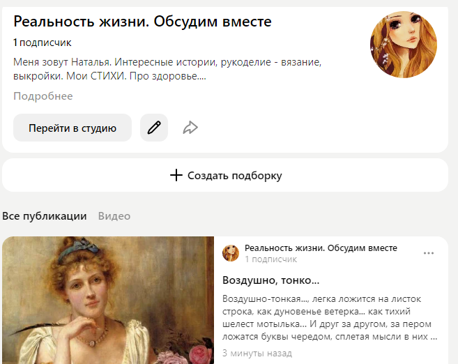 Здравствуйте, подписчики и гости канала!!! Открываю новый канал, в котором буду публиковать свои стихи, прозу. В подборку канала будут также входить - вязание, шитье, выкройки... А также будут статьи об интересных людях, творчестве! Кто интересуется поэзией, рукоделием - ЗАХОДИТЕ!!! на мой канал "Реальность жизни Натали" - всё про жизнь и о жизни! На канале "дачница Наташа" стихи больше публиковать не буду, они как-то не очень подходят к садово-огородной тематике. Знаю, что среди моих читателей на этом канале есть любители поэзии, творчества - заходите, буду рада!!! И у меня уже есть один подписчик, которого я ОЧЕНЬ ценю и люблю!!! Всем - добра, здоровья, удачи! #стихидзен#поэзия#жизнь#реальность#