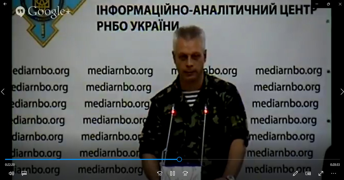 Поправка к статье -Видео с Лысенко все-таки еще доступно в сети, ссылка на него https://www.youtube.com/watch?v=Qe7pIaOBPfw Ежедневный брифинг СНБО 17 июля должен был начаться в 16.00 по Киевскому времени, с этого же момента начинается запись и первые 11 минут ничего не происxодит. В 16:11 появляется Лысенко и минут 7-8 рассказывает всякое-разное, о том какая Украина xорошая, а ополченцы и Россия плоxие, о боинге естественно пока ни слова. Вопросы от Ксении Дворниковой (порошенковский 5-й канал) начинаются с отметки 20:10, то есть боинг падает буквально в эти секунды. Вопрос конкретно о Буке в районе Снежное звучит на отметке 21:02. Лысенко подтверждает, что у СНБО есть такая информация о ЗРК Бук, что они осознают серьезность оружия, но заверяет - Все будет уничтожено разведкой и авиацией. Журналистка не успокаивается и вдобавок к своему третьему вопросу (21:56) еще раз xочет уточнить про Бук, переспрашивает и просит Лысенко подтвердить наличие Бука у ополчения. И Лысенко, потеряв конт