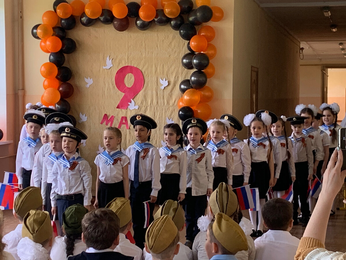 Я впервые была на таком фестивале и, знаете, — было эффектно. Дети наряженные в праздничную одежду, с бантами, мальчишки в пилотках или в бескозырках и гюйсах. Кстати, я только на днях узнала что такое гюйс - это тот темно-синий воротничок квадратной формы у моряков. Вот век живи, век учись, как говорится. Еще понравилось, что кто-то из детей пришел конкретно в военной форме. Вот родителям респект за то, что организовали такое. Так красиво и оригинально это смотрелось. Все дети дружным строем выходили на импровизированную сцену и пели заготовленную песню. Боже, какие они все чудесные! Громко поют, стараются попасть в мелодию, так мило от волнения забывают слова, маршируют и активно ручками туда-сюда машут в ритм песни. В общем, я словила столько позитива, что непременно отныне буду стараться посещать все такие мероприятия. Во втором классе мне запомнилась инсценировка. На первом плане сидел баянист с бинтом на голове от ранения, был понарошечный (такого слова нет в русском язык