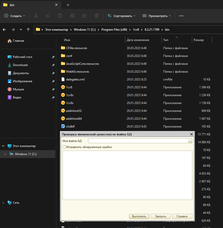 Тестирование и исправление файла базы данных 1С Предприятие с помощью chdbfl.exe "Ошибка формата потока"