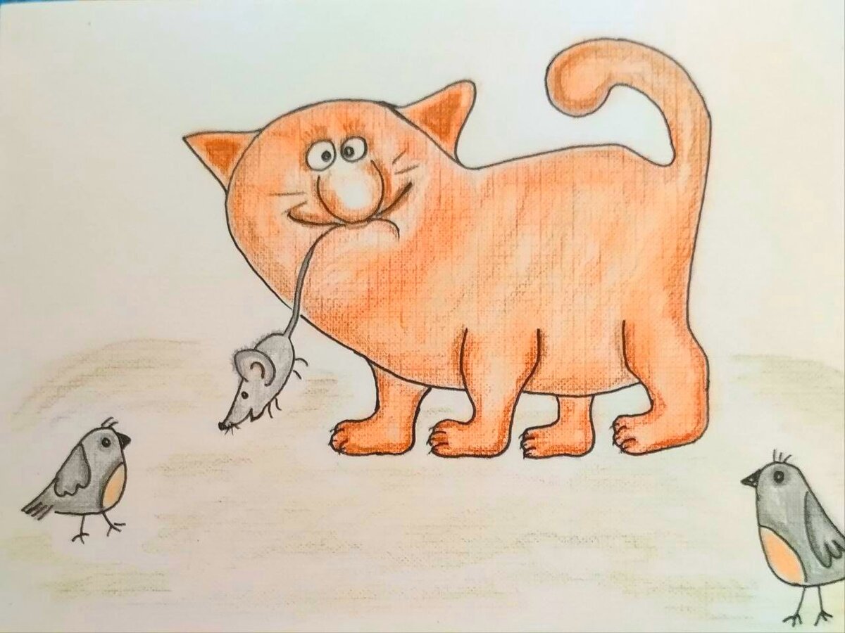 Подруги поудобнее устроились на веточке и даже не увидели, как кот карабкается по дереву. Он замахнулся на них сзади большой когтистой лапой, но девочки вовремя оглянулись и, взявшись за руки, взмыли в небо. Кот щёлкнул зубами и остался ни с чем.