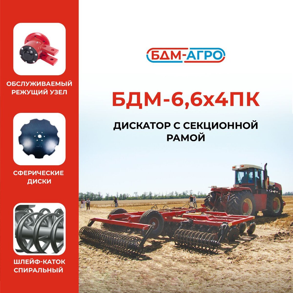 Секционная рама, легкая транспортировка в уже сагрегатированном состоянии, высокое качество всех узлов, соответствующее современным стандартам – дискатор БДМ-6,6*4ПК – это тот самый уровень почвообработки, который бы вы хотели.