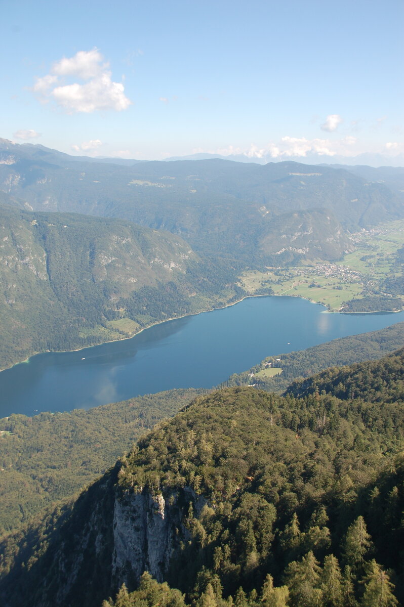 На горе зимой кипит жизнь, как на любом европейском горнолыжном курорте, но и ранней осенью, подъемник, похожий на немного располневшую от европейских харчей кабину трамвая, бодренько поднимает на 1000 метров несколько десятков людей разом. Взлетели, выдохнули и ахнули. Как ни готовься, сколько бы раз ты не поднимался в горы, замираешь каждый раз как в первый. А внизу изумрудная гладь озера, а над озером горы всё выше и выше. В тучах вершина Триглава. Но вдруг хмарь рассеялась и открылся во всем великолепии один из тех видов, которые никакой фотографией не передашь, можно лишь кожей впитывать эту красоту, как цветок впитывает тепло солнца.