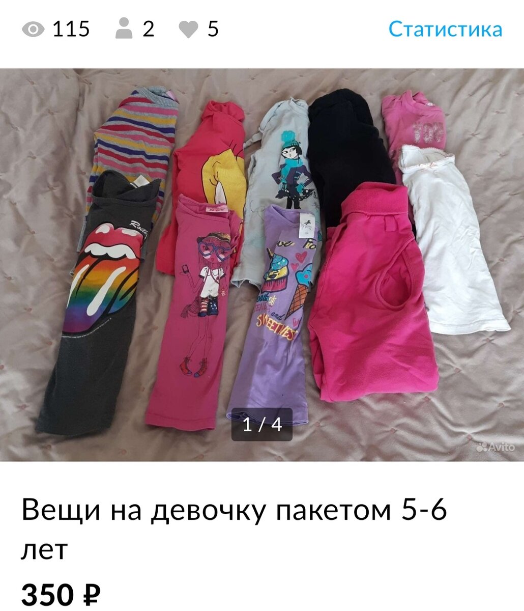 Отяитаюсь о продажах с прошлой публикации. Куртка из натуральной кожи на короткий период прокачала мне аккаунт, и на давний долговис - пакет одежды на девочку 5-6 лет в среднем состоянии за 350р - нашлась покупательница. Вещи из разряда "ни пятен, ни дырок, но подустали". За счёт того, что большая часть одежды хороших марок (Gulliver, H&M, Palomino и др), они, хоть и пережили нескольких детей (минимум троих), но были в приличном состоянии, однако налёт усталости на них присутствовал. Изначально пакет стоил, кажется, 500р, постепенно опустилась до 350, но и за такую символическую сумму (3 лонгслива, 5 футболок, 2 штанов) желающих не было. И вот, наконец, покупатель захотела оформить доставку. Заглянула в профиль - а она на соседней станции метро. Я предложила привести вещи при условии, что она возьмёт ещё один пакет, который я только что отсняла и не успела даже выставить, за 500р. Получив согласие, на следующий день с утра отвезла вещи. Оказалась, что покупательница - мама с ДЦП, по