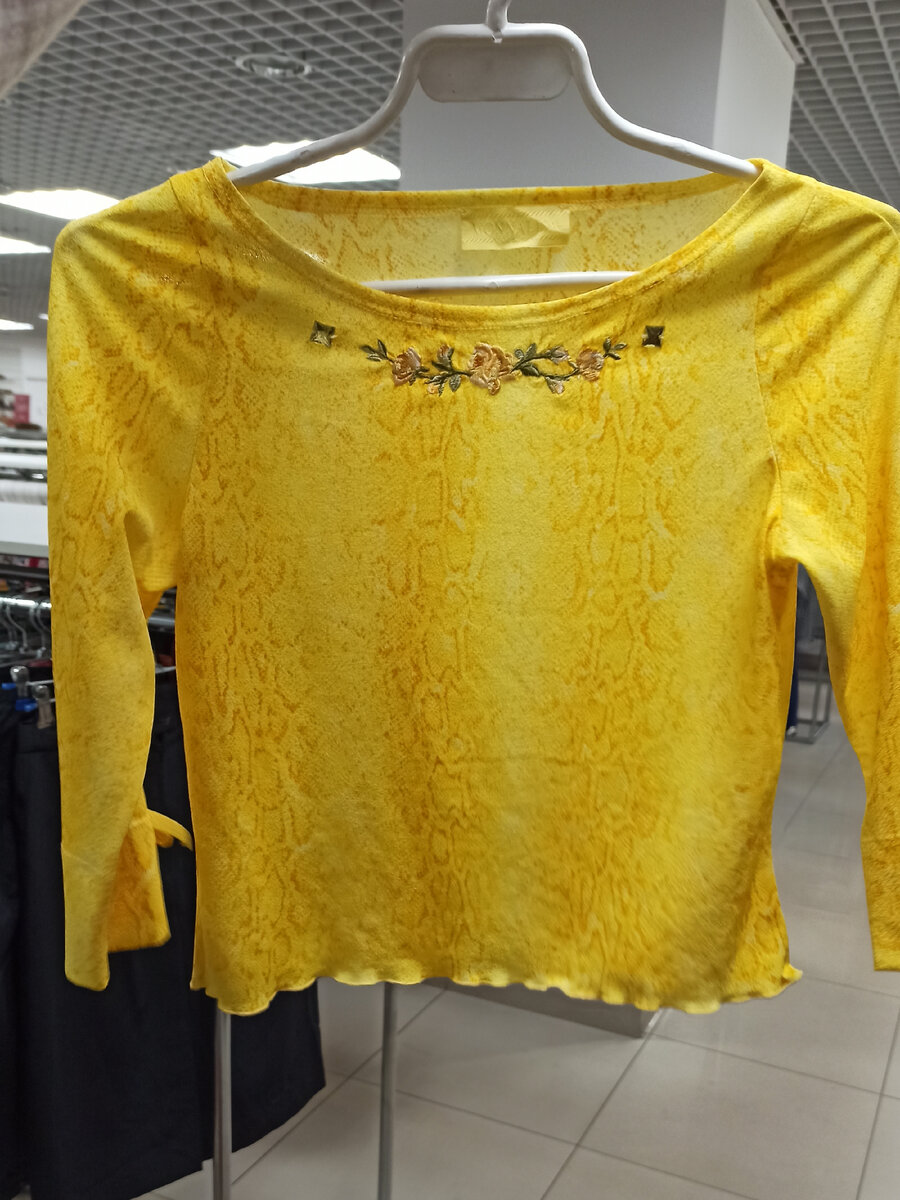 В этот раз мне попалось много винтажных топов сеток, которые еще с прошлого года вернулись в моду. Я как раз искала что-нибудь на продажу. Этот яркий с желтым змеиным принтом мне очень понравился, но потом нашла на нем дырочку.