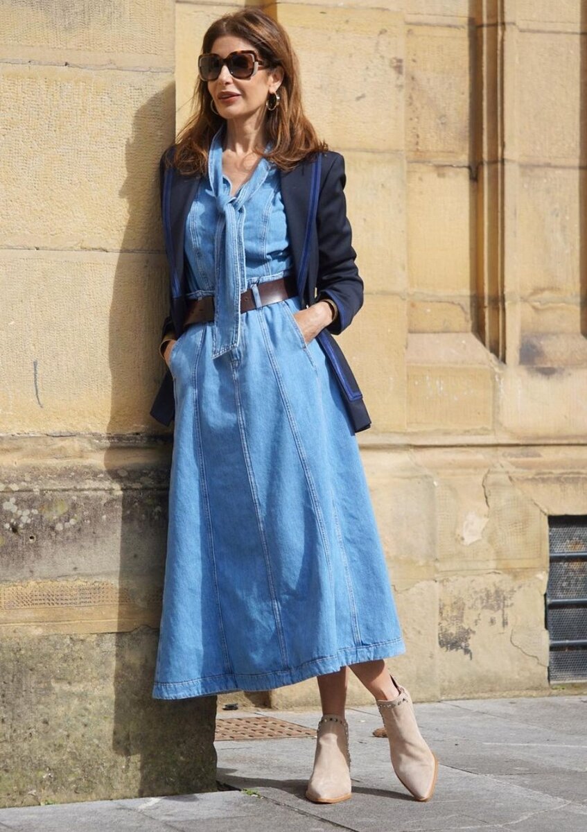 Рекомендации стилиста, которые помогут создавать по-настоящему летние образы даже из тяжелой джинсовой ткани Безусловный фаворит каждой женщины летом - платье. Слом шаблона и замена летящего светлого платья на джинсовое позволит создать не только женственный, но структурированный статусный образ. И это несмотря на дерзский и расслабленный эффект обычного денима. Именно с платьем плотная ткань меняет свои обычные качества и приобретает благородный вид. Усиливаем впечатление широким ремнем, акцентируя внимание на талии. Ленты или шнурки на дениме еще больше подчеркнут женственность образа. Накладные карманы - мастхэв этого лета. Прирученные стили милитари и сафари еще Ивом Сен-Лораном не дают покоя современным дизайнерам, имеющим большое влияние в мире моды. Трендоообразущие Прада и Миу-Миу сделали вещи с накладными карманами главным трендом 2023 года. Поэтому и джинсовые куртки с такими элементами дизайна сегодня максимально повышают градус стиля. Сохранить женственность в этих стилях