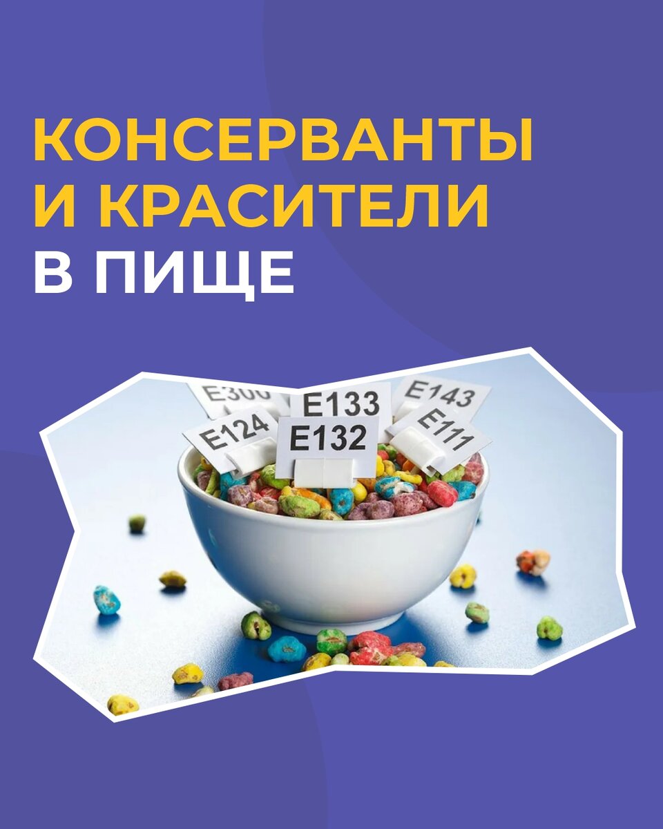 Консерванты и красители – это вещества, которые добавляются в пищу, чтобы увеличить ее срок хранения и улучшить внешний вид.