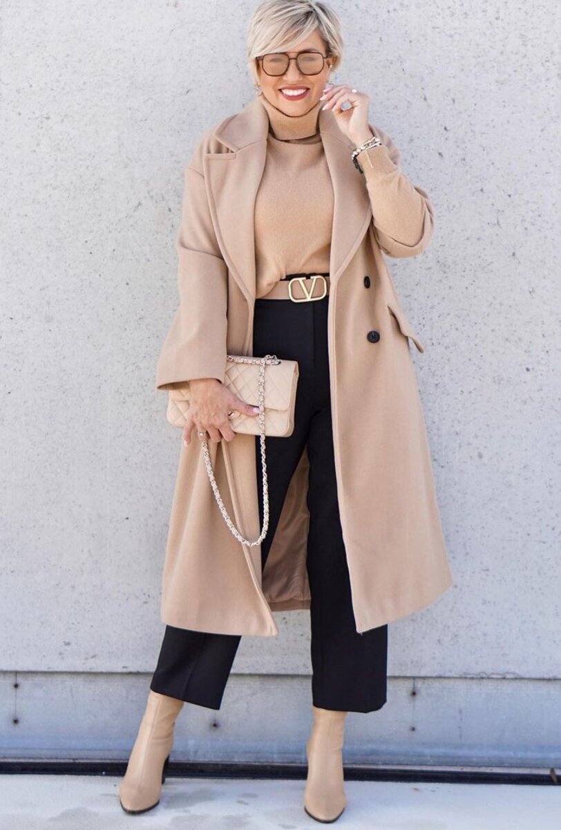 Есть определенная категория вещей-инвестиций, которые могут служить годами. Брать их выгоднее всего во время сезонных распродаж. Бежевое пальто - одна из самых универсальных вещей рентабельного гардероба, которая всегда смотрится дорого, статусно и сочетается с любым другим цветом. Выбирая такое пальто обращайте внимание на длину и крой. Длина ниже колена при прямом крое - модель с максимальной комбинаторикой. Прямые линии пальто, вертикальный ряд пуговиц и геометрия лацканов помогут вытянуть силуэт, сделать фигуру стройнее и структурировать образ. Такое пальто уместно носить даже с бесформенными спортивными костюмами и кроссовками - пальто нивелирует эффект небрежности и подтянет комплект до нужного уровня. Минималисмтичные образы с таким же лаконичным дизайном пальто добавят благородства и дороговизны комплекту. Чтобы выглядеть интересно, не обязательно выбирать сложный крой и пестрые принты. Для эффектного выхода достаточно гладкой фактуры атласа, глянца кожаной обуви и матовост