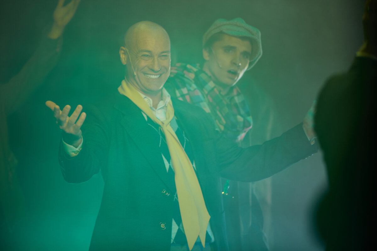 Настроение и ритм спектакля задают живой баян, ударные и гитара.