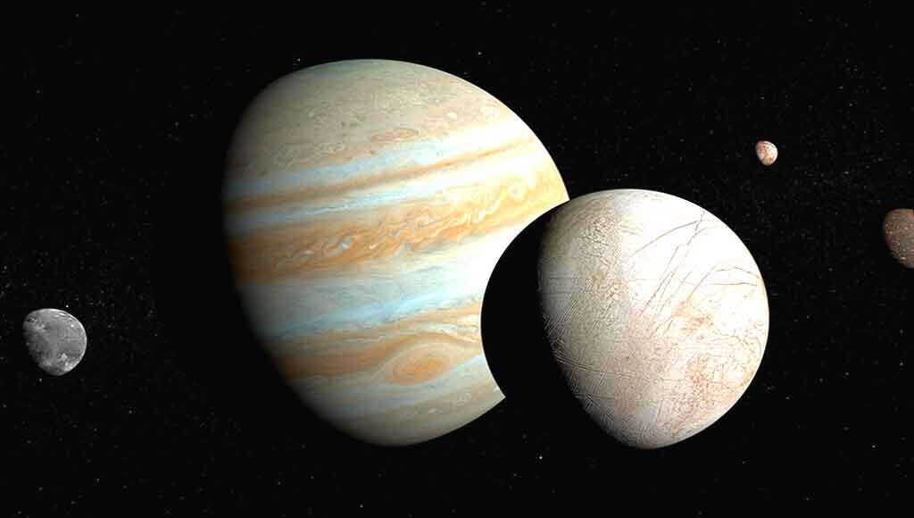 Европа и Ганимед - два из четырех главных спутников Юпитера. Оба – потенциальные кандидаты на роль вместилищ инопланетной жизни. Наблюдения за Европой показали, что на ней присутствуют некоторые благоприятные для жизни аспекты. С другой стороны – Ганимед, самый большой спутник во всей Солнечной системе. На нем тоже есть жидкая вода. А вода, как мы знаем, - источник жизни. Жидкая вода на Европе Европа сразу же привлекает внимание ученых, поскольку является наиболее подходящим местом для жизни в Солнечной системе. На ней нет вулканов, ее поверхность покрыта толстым слоем льда, а под ним плещется океан жидкой воды. На поверхности Европы присутствуют богатые серой соединения, придающие льду местами красновато-коричневый цвет. Они могут поступать из недр Европы или с постоянно извергающихся вулканов Ио, еще одного спутника Юпитера. На Европе не так много кратеров, что означает, что ее поверхностный лед постоянно обновляется. Намеком на жидкую воду является магнитный сигнал Европы, соответст