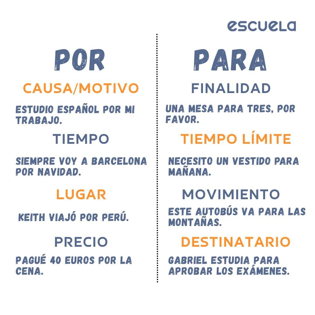Оба предлога переводятся на русский как «для», но область применения имеет различия. Знакомим с тонкостями и в конце предлагаем пройти мини-квиз. 👇Пиши ответы в комментарии Мы в Телеграме! А для комплексной практики языка приходи на уроки в Escuela. Escuela - это онлайн-школа испанского языка, которая полностью подстраивается под ваш запрос. Испанский для эмиграции, работы и учебы в испаноязычной стране или же для себя. Вы совместно с преподавателем можете выстроить план занятий, которые проходят на удобной интерактивной платформе. Бонус для учеников - бесплатные разговорные клубы каждый месяц! Попробовать первое пробное занятие можно бесплатно, а для записи кликай сюда! Ждем тебя :)